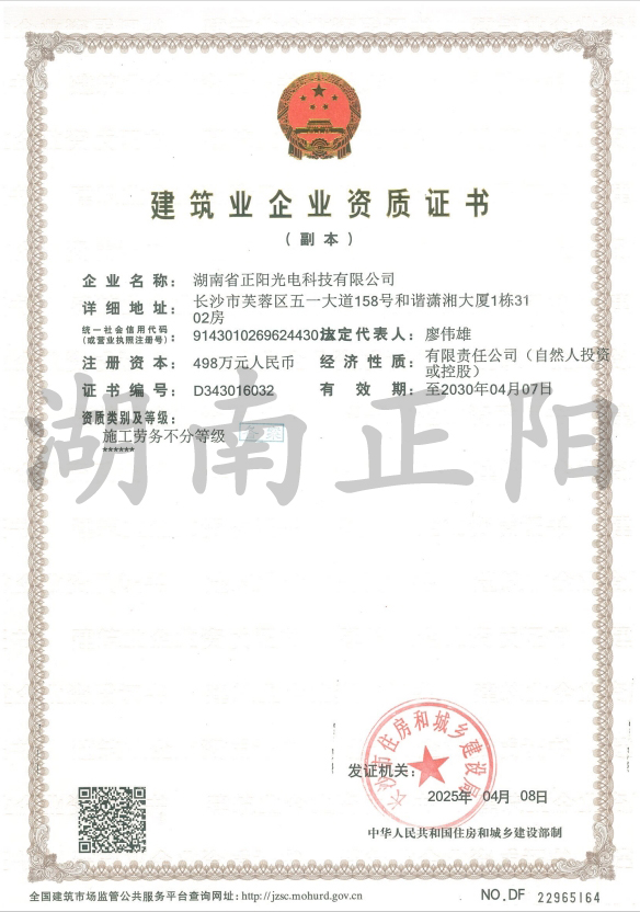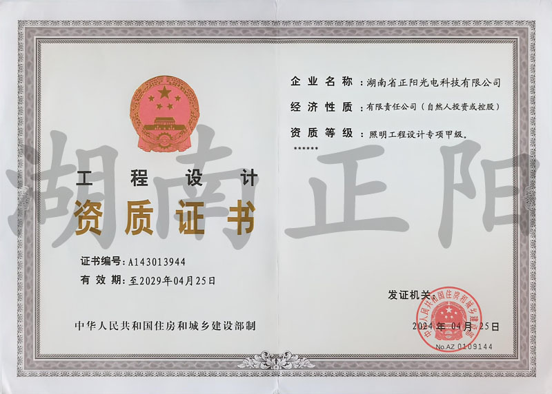 湖南省正陽(yáng)光電科技有限公司是一家從事亮化工程及大型燈光藝術(shù)的設(shè)計(jì)、制作、安裝和維護(hù)于一體的專(zhuān)業(yè)化公司。公司資質(zhì)齊全、管理嚴(yán)謹(jǐn)、技術(shù)先進(jìn)、實(shí)力雄厚,取得了城市及道路照明工程專(zhuān)業(yè)承包壹級(jí)資質(zhì)、照明工程設(shè)計(jì)專(zhuān)項(xiàng)甲級(jí)資質(zhì)、國(guó)家高新技術(shù)企業(yè)、國(guó)家“重質(zhì)量·守誠(chéng)信”示范企業(yè)。